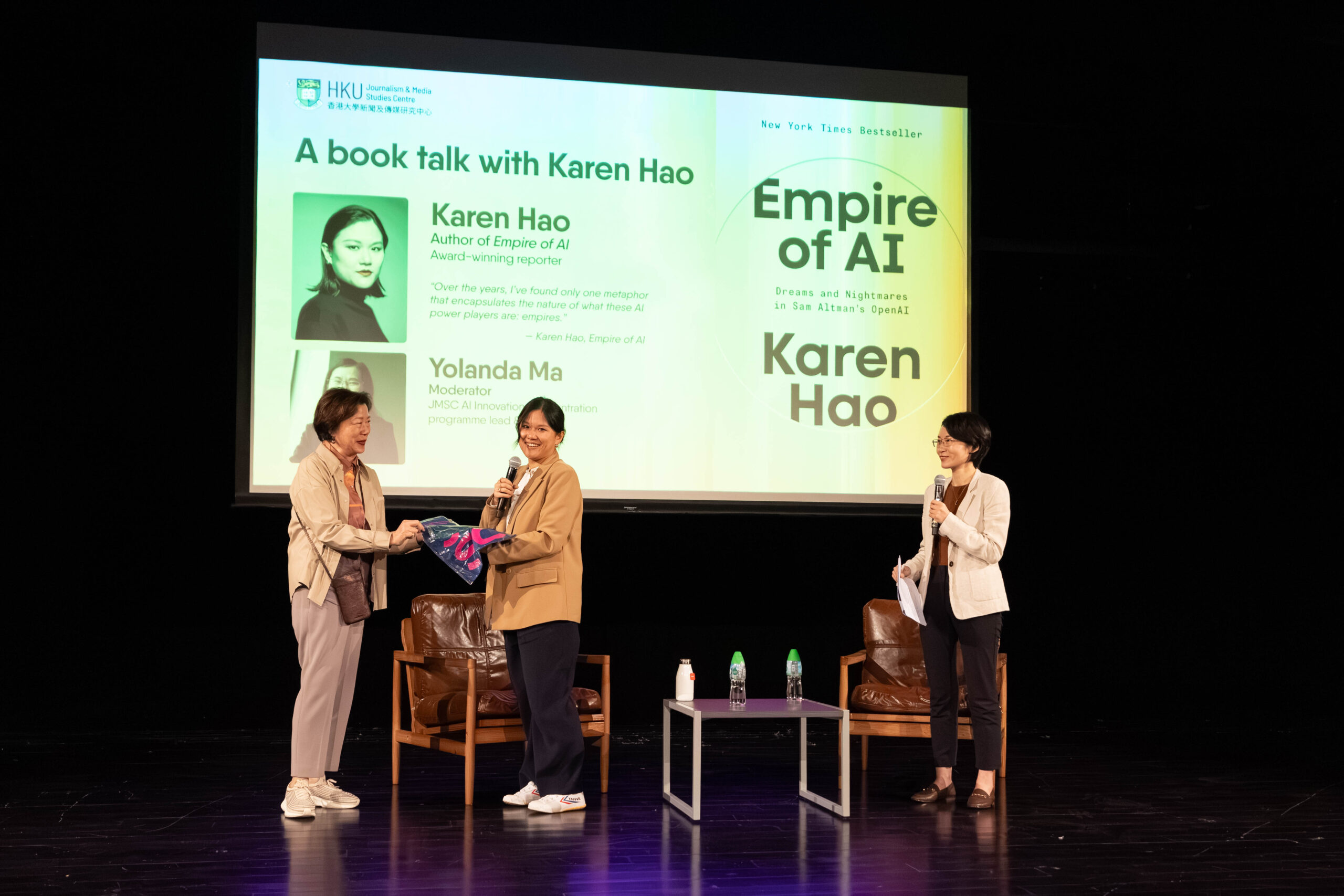 Hao then addressed various AI-related topics during the Q&A session, including data centres and the environmental impacts associated with the industry's rapid development.
