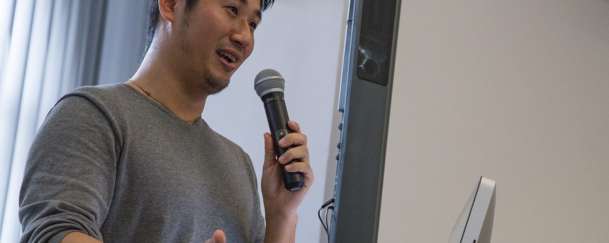 Paul Cheung, the Global Interactive Editor for the Associated Press, speaking in the JMSC's Digital Media Lab.