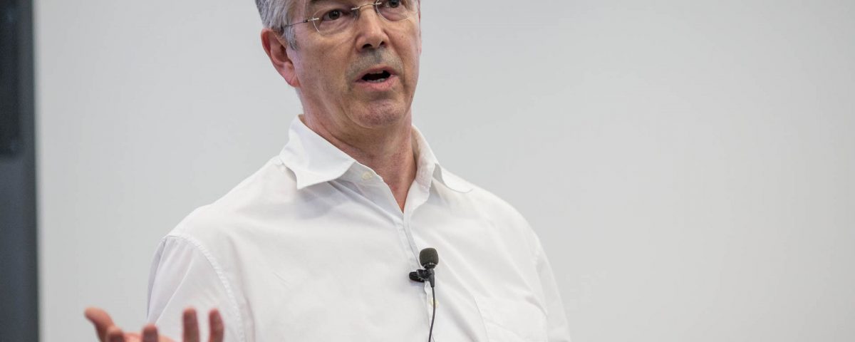 George Brock speaking at the JMSC in the Digital Media Lab.