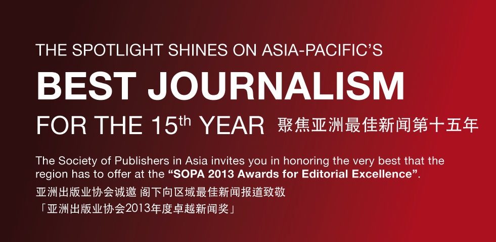 Tickets are now on sale for the 15th annual Society of Publishers in Asia (SOPA) Awards for Editorial Excellence administered by the JMSC.