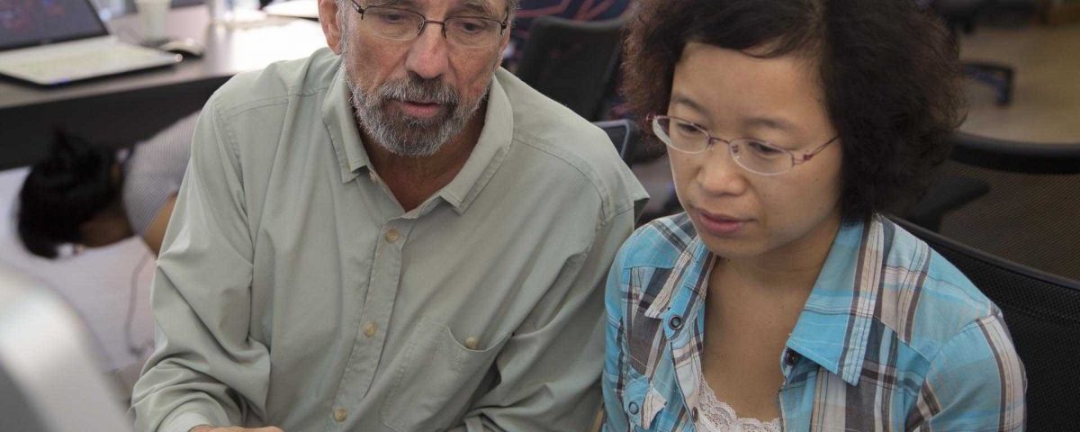 Richard Hornik, Director of Overseas Partnership Programs for the Center for News Literacy at Stony Brook University, works with a student at last week's News Literacy Workshop.