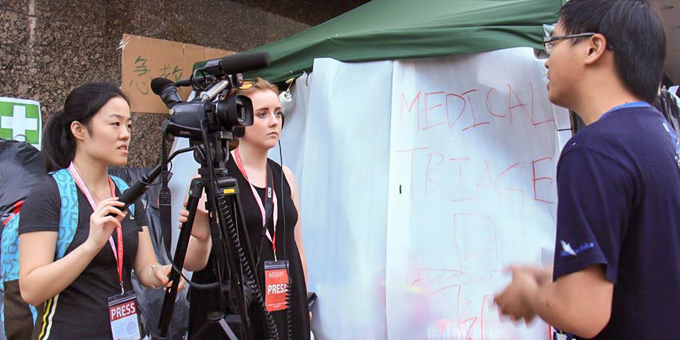 News outlets including the BBC, Al Jazeera, MSNBC, Quartz, the Huffington Post, i24 and Spiegel Online have all carried reports from the MJ’s on the “Occupy Central” movement, and some of the students have been interviewed for live, on-the-spot coverage of the protests.