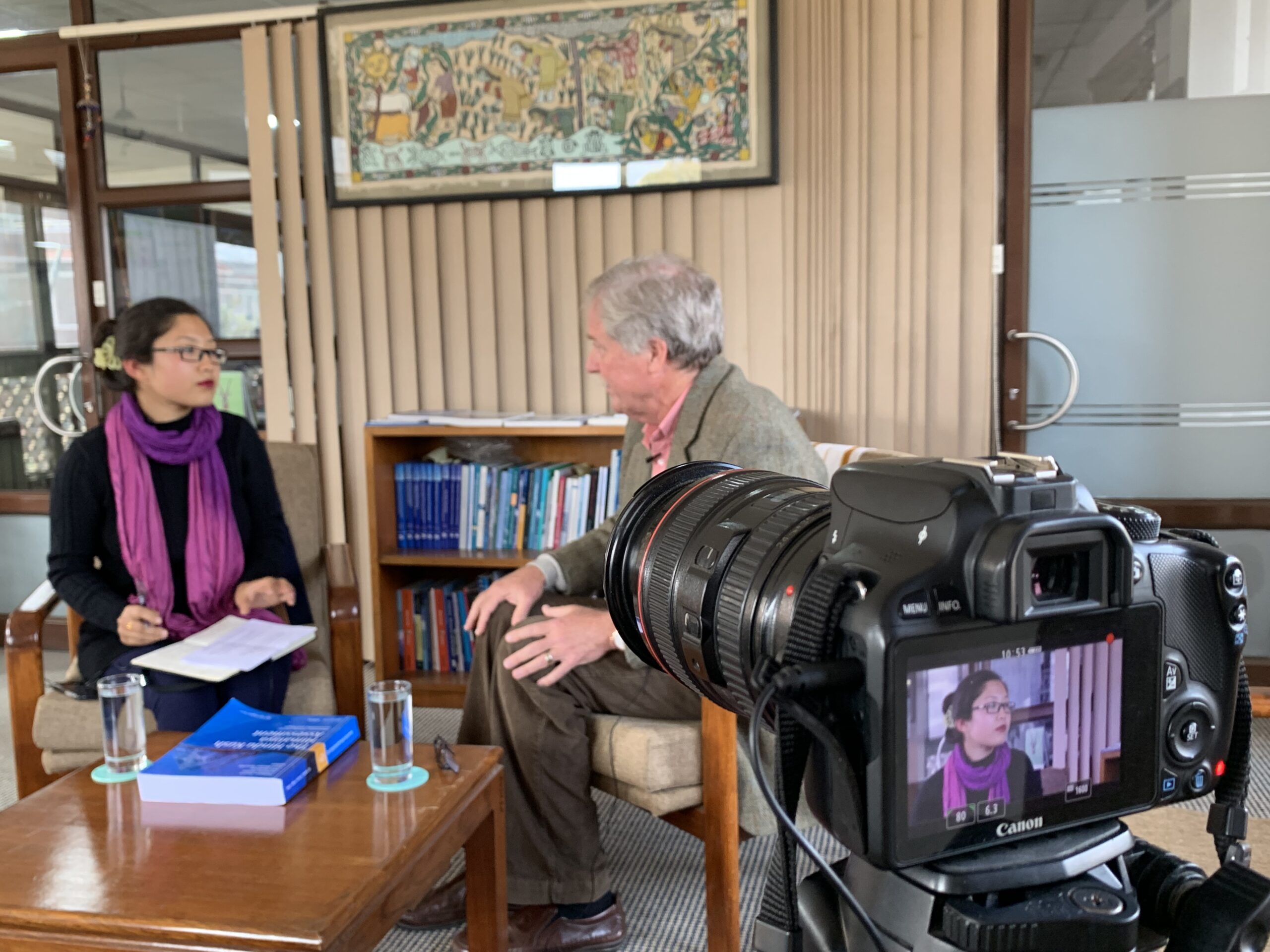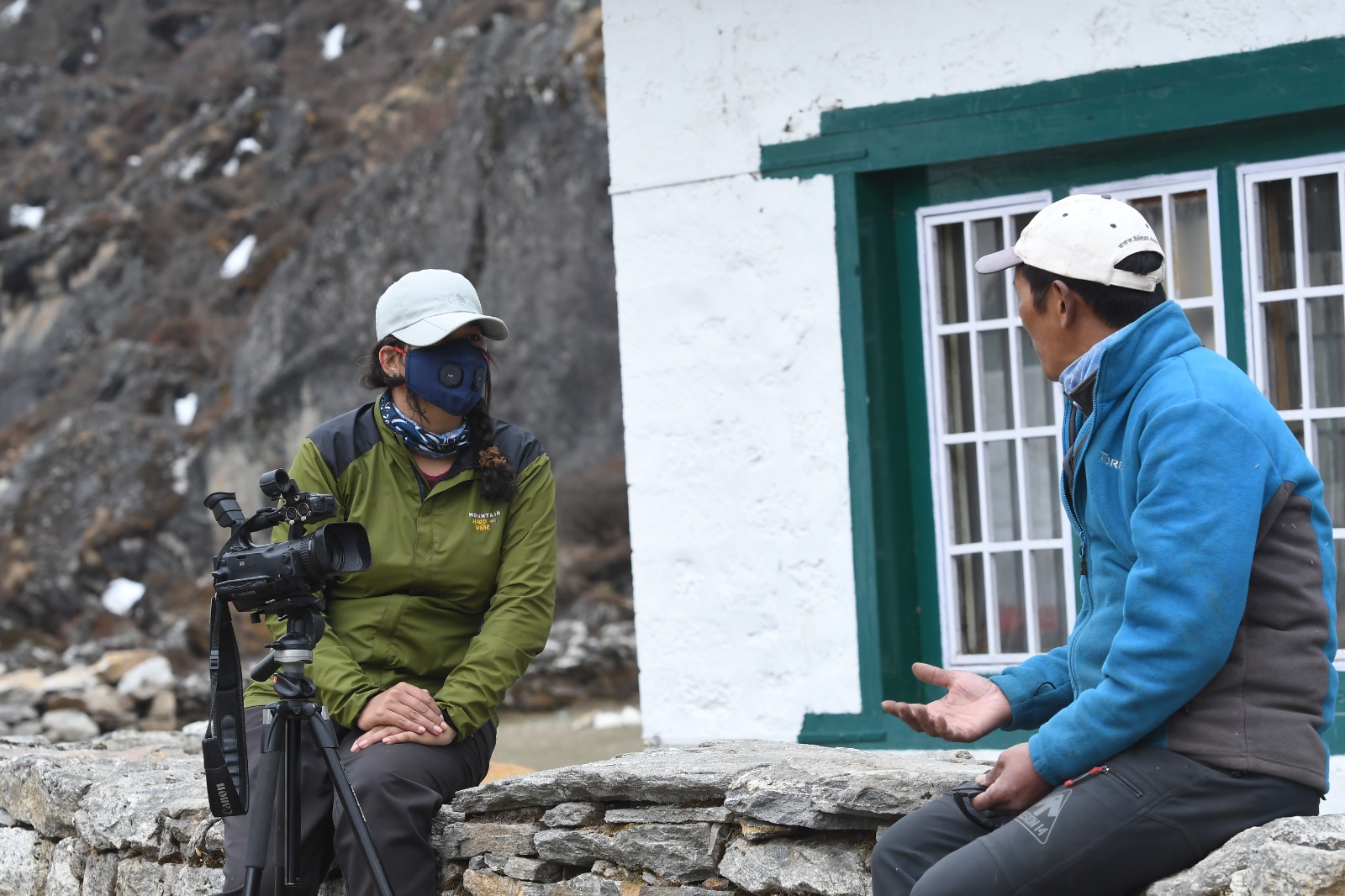 Sonia conducting an interview on the impact of climate change on the Himalayas