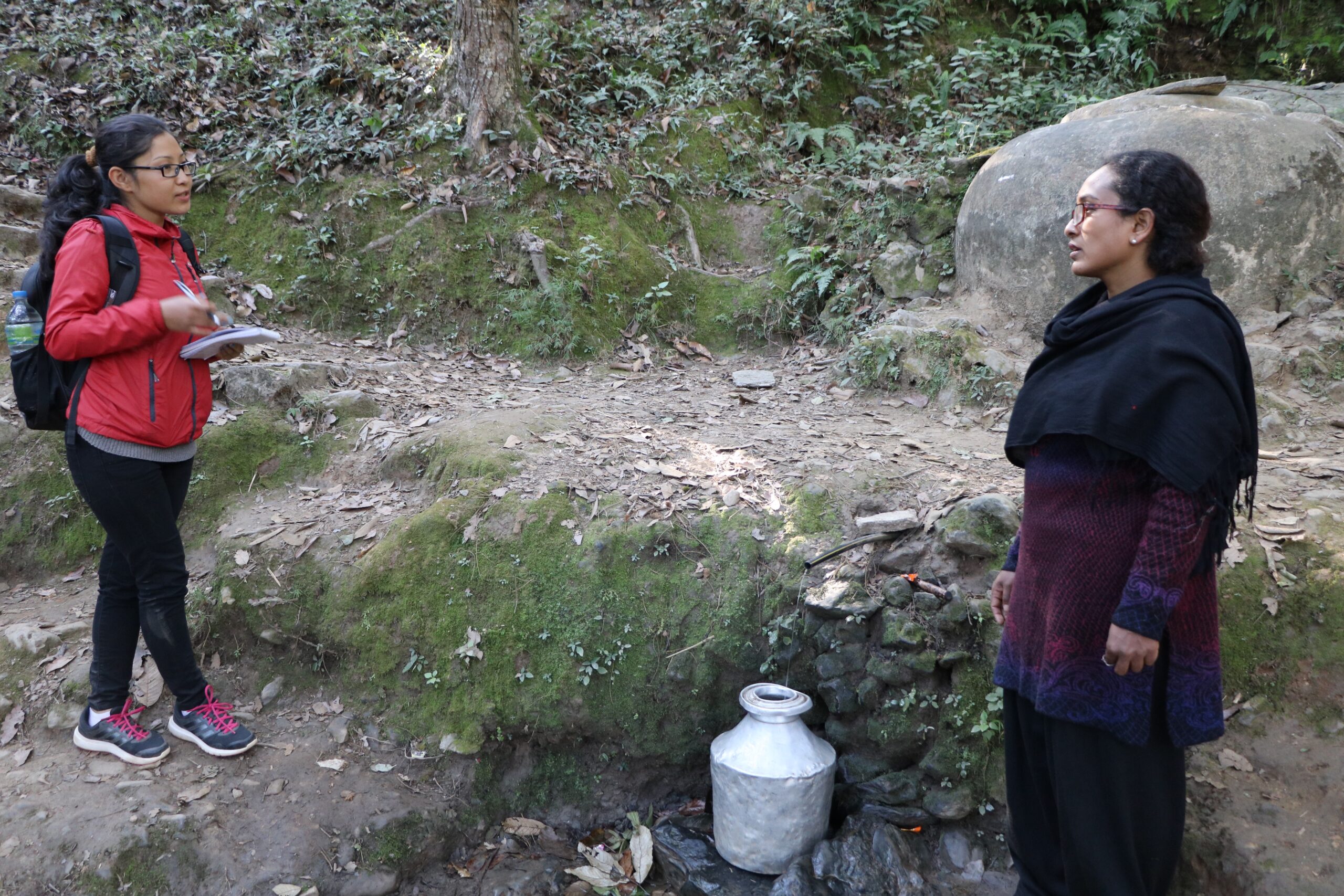Sonia interviewing a women in Kavre, Nepal, about springs drying up in her village in 2017