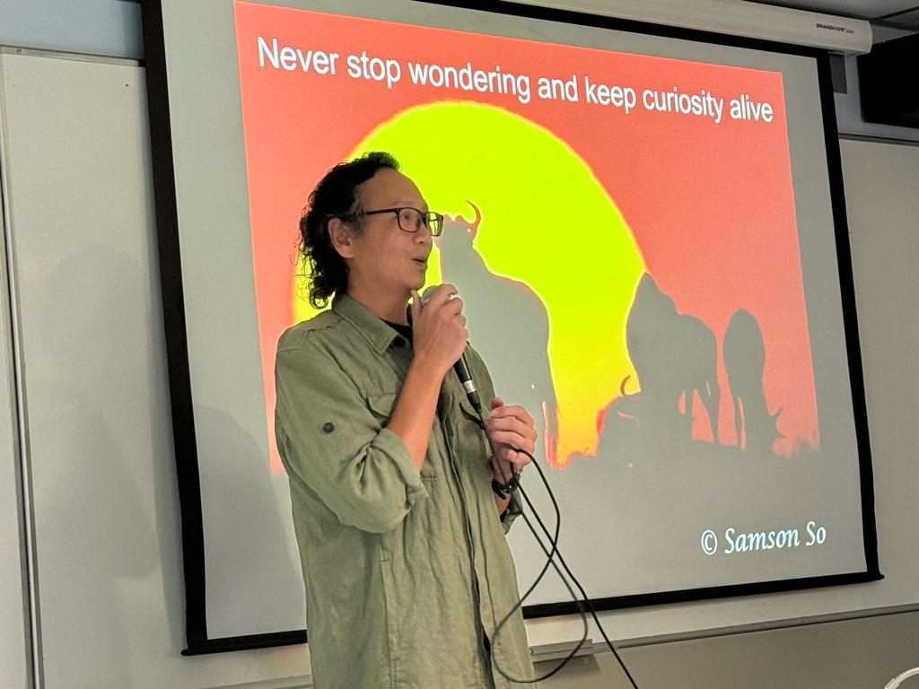 Samson delivering a talk on his career and work in Hong Kong in November 2023