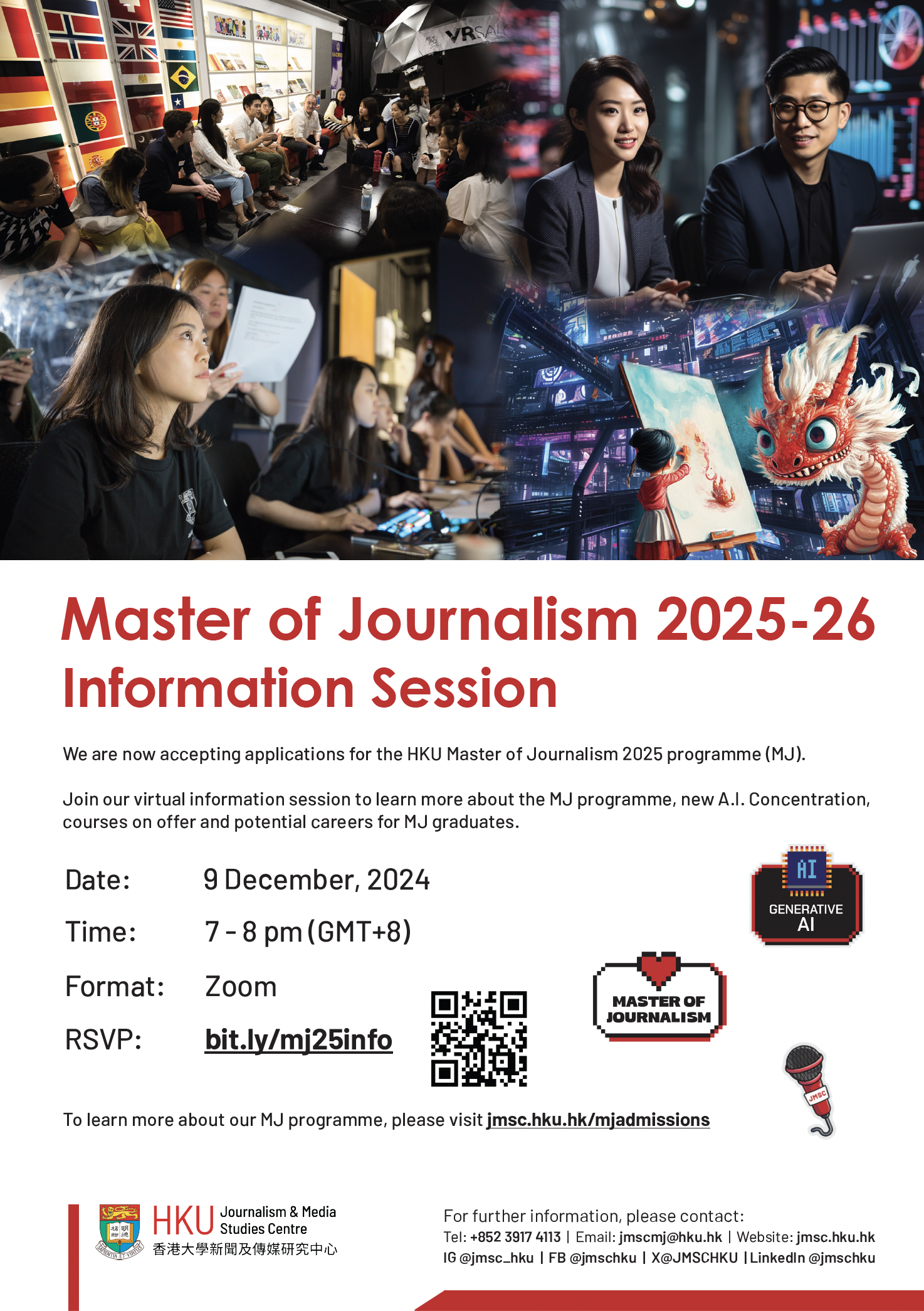 To learn more about our MJ programme, please visit jmsc.hku.hk/mjadmissions or contact us at jmscmj@hku.hk.
