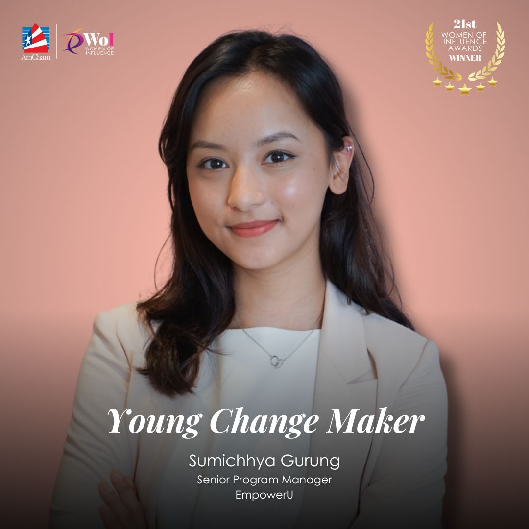 Congratulations to Sumichhya Gurung (BJ 2019) for winning the “Young Change Maker Award” at the 21st Annual Women of Influence awards held by the American Chamber of Commerce in Hong Kong.