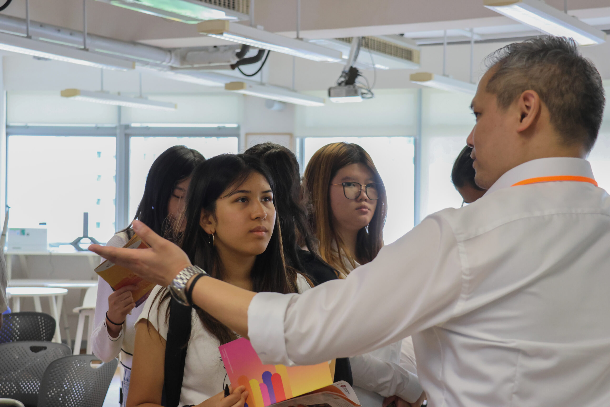 The students then participated in an interactive AI workshop hosted by lecturer Foon Lee and teaching assistant Edmond Ng, where they gained hands-on experience generating their own avatars and music videos.