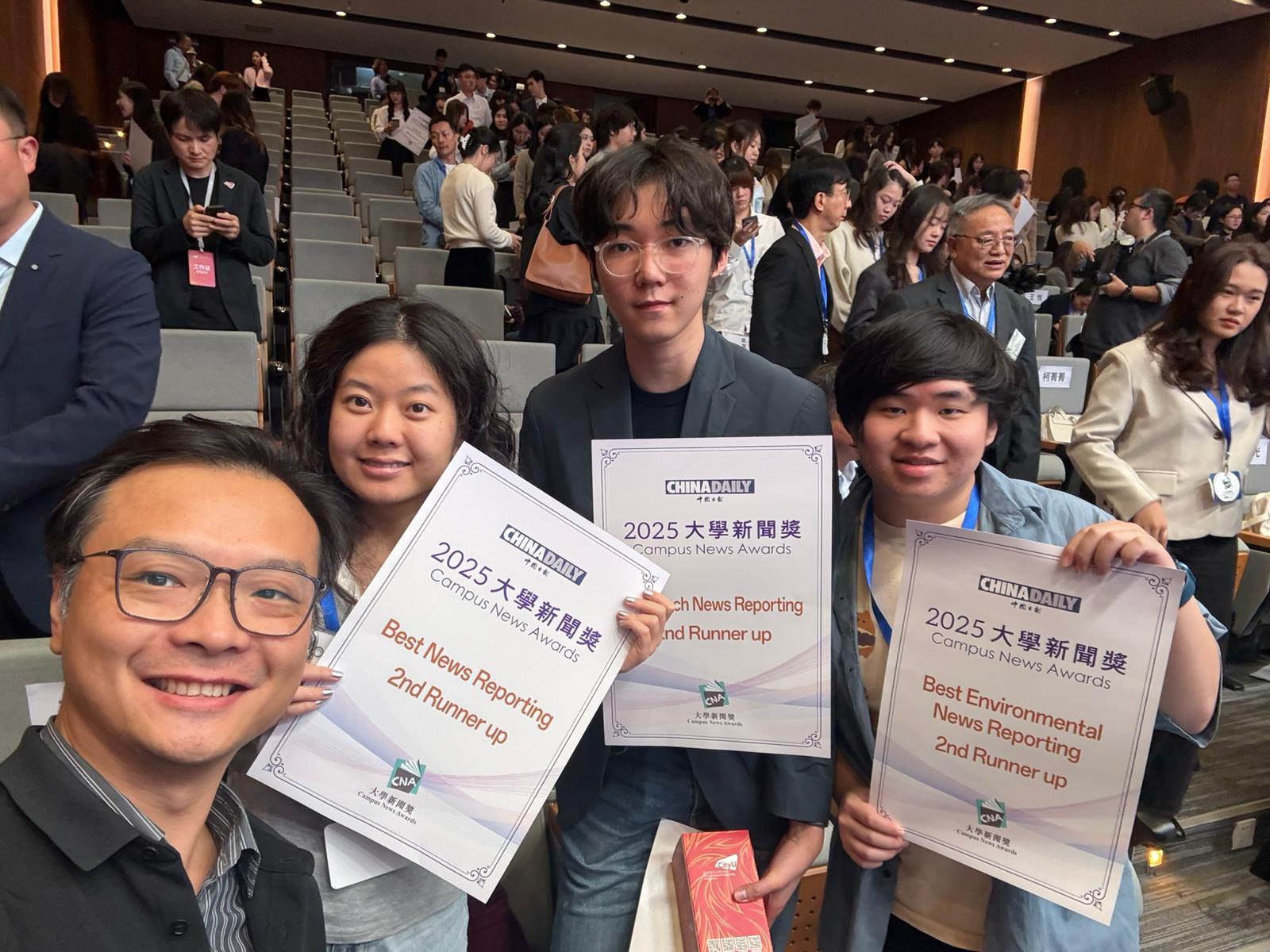 Yohji Lam (BJ 2026, 3rd photo) received second runner-up in the "Best Environmental News Reporting" category with his article on how Hong Kong tackles sustainability.