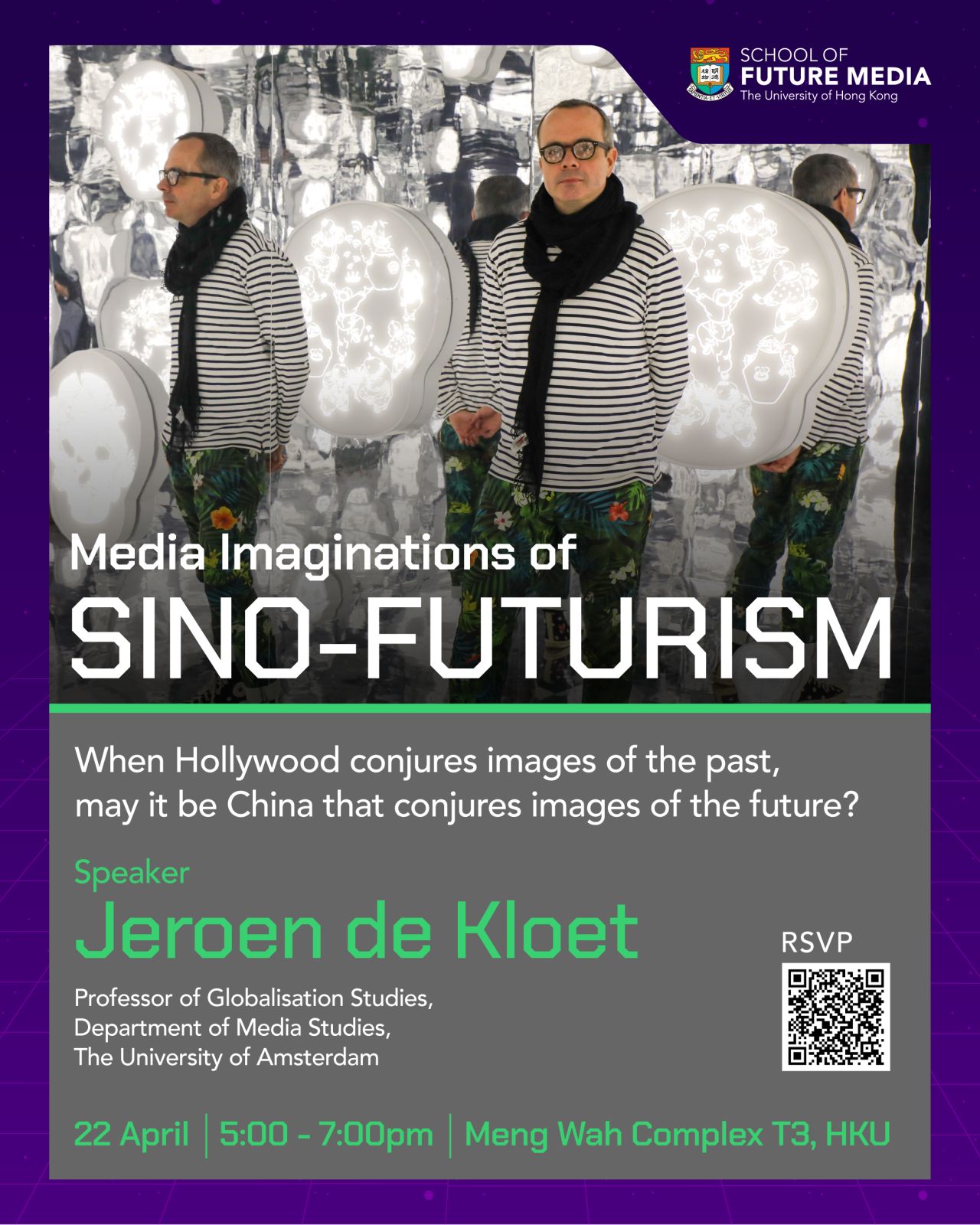 While Hollywood conjures images of the past, could China conjure visions of the future? And what kind of future would that be? Professor Jeroen de Kloet from the University of Amsterdam will explore the notion of Sinofuturism (Lek, 2016) by drawing on artworks by figures such as Lawrence Lek, films like Frant Gwo's The Wandering Earth, and platformed AI works emerging from China.